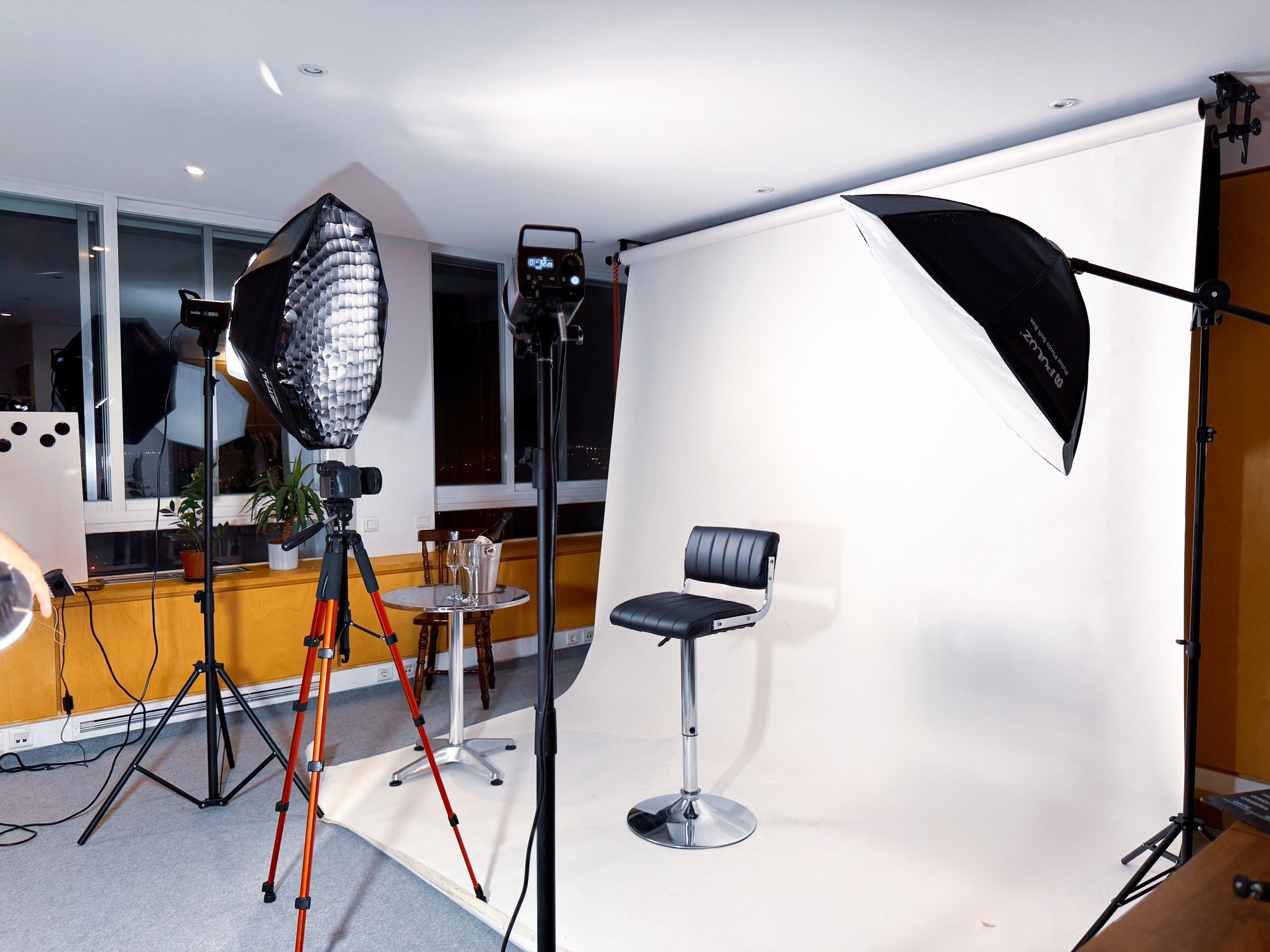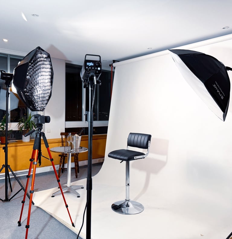 O tempo mínimo de aluguer é de 2 horas. O preço inclui a utilização de duas luzes contínuas, com softbox, refletores, tripés para câmera, fundo (preto, branco ou croma). *Para outros equipamentos solicitar orçamento.